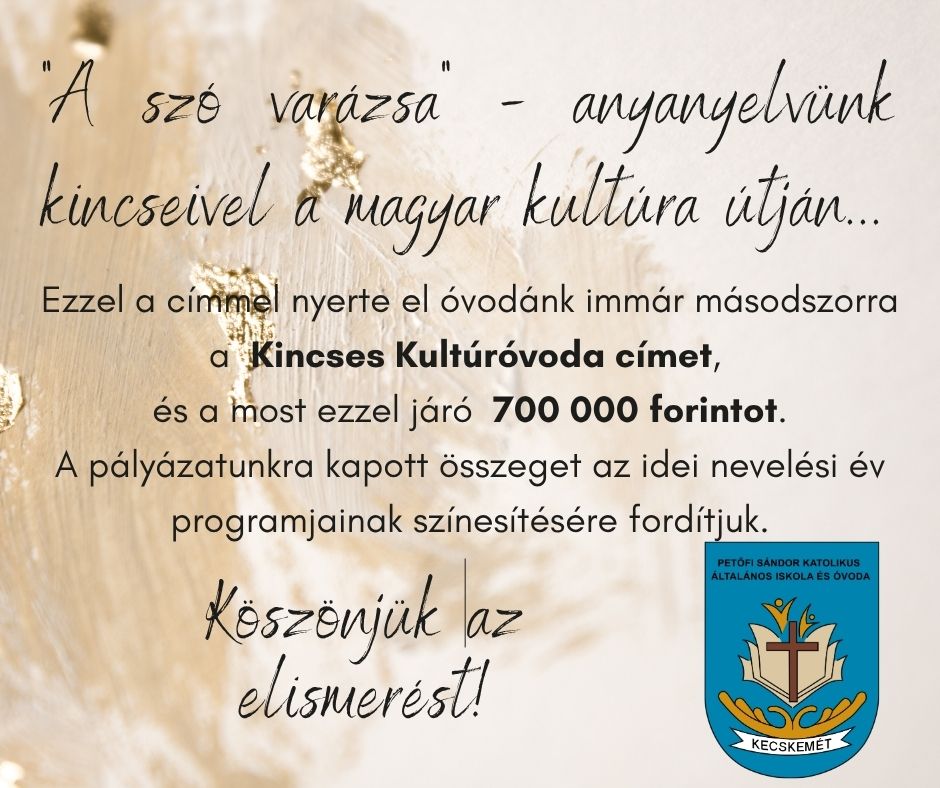 Üzemeltető : Petőfi Sándor Katolikus Általános Iskola és Óvoda